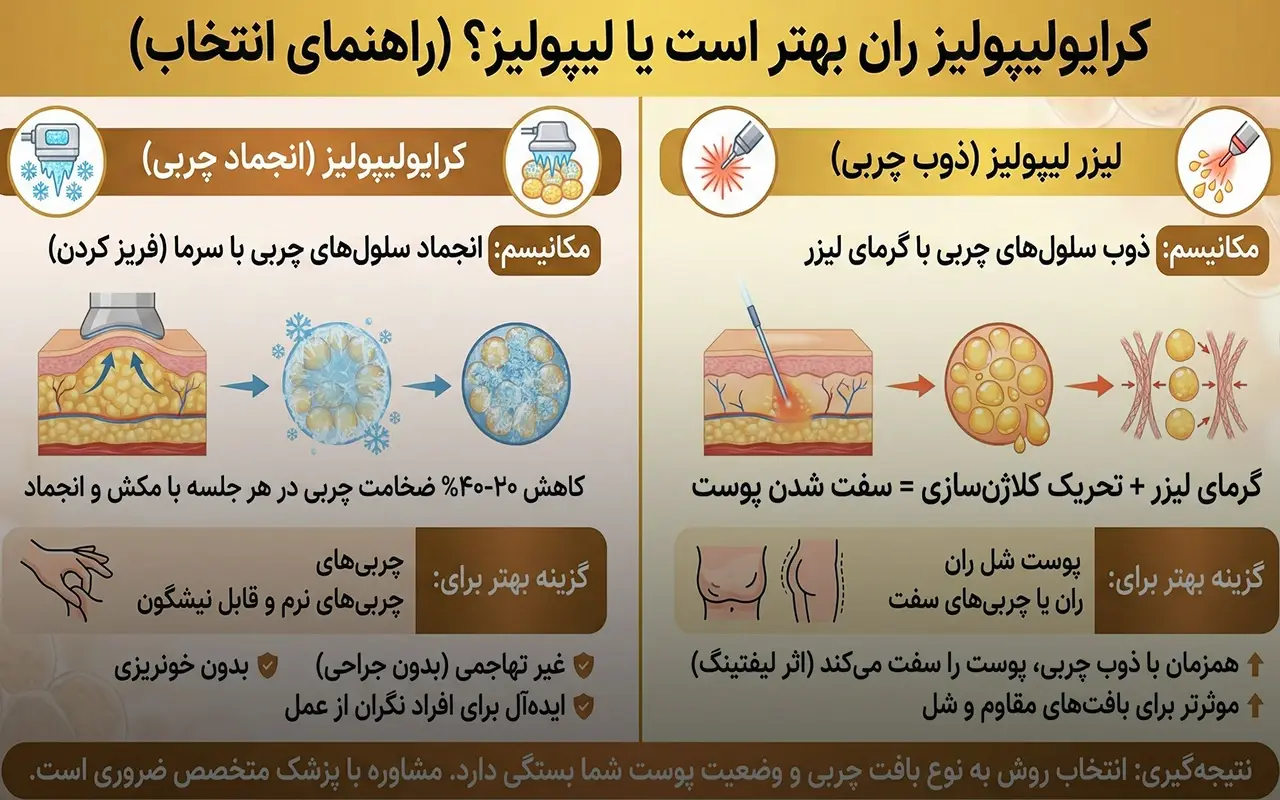 کرایولیپولیز ران بهتر است یا لیپولیز؟ (راهنمای انتخاب)
