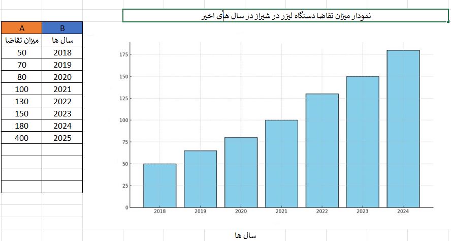 نمودار میزان تقاضای دستگاه لیزر موهای زائد در شیراز در سال های اخیر
