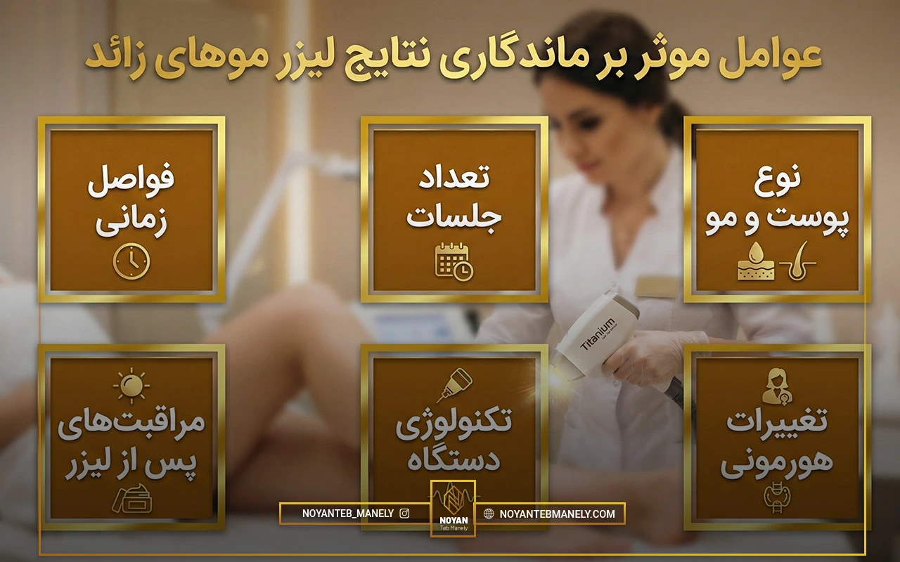 پس از آخرین جلسه لیزر، معمولا ۱ تا ۳ سال نتیجه لیزر پایدار باقی می ‌ماند. بعد از این مدت ممکن است موهایی دوباره رشد کنند اما بسیار کمتر از قبل و ریزتر خواهند بود. با مدیریت این عوامل، می‌توان احتمال رشد مجدد موها را به حداقل رساند و نتایج ماندگارتری به دست آورد. ماندگاری نتایج لیزر موهای زائد به عوامل مختلفی بستگی دارد که می‌توان آن‌ها را به چند دسته کلی تقسیم کرد: