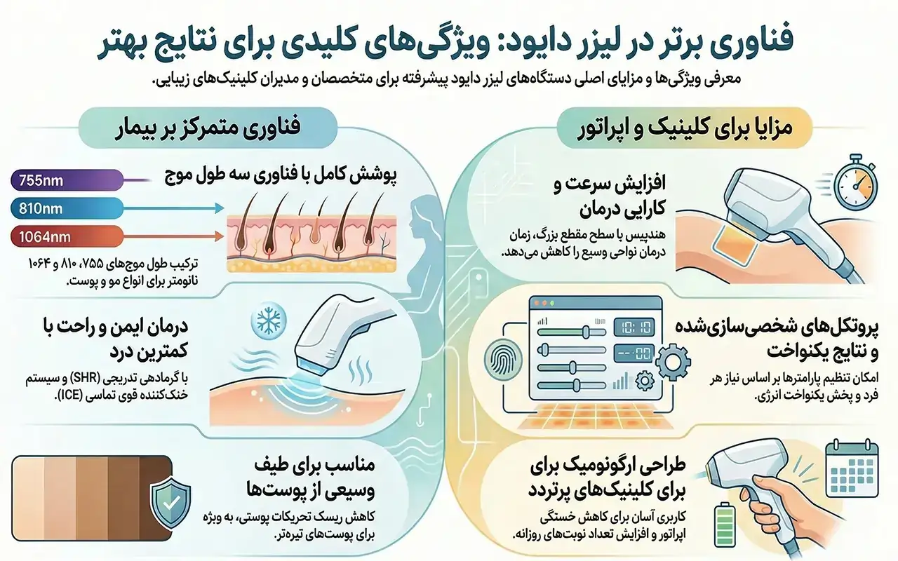 ویژگی های و کاربردهای دستگاه لیزر سوپرانو آیس تیتانیوم